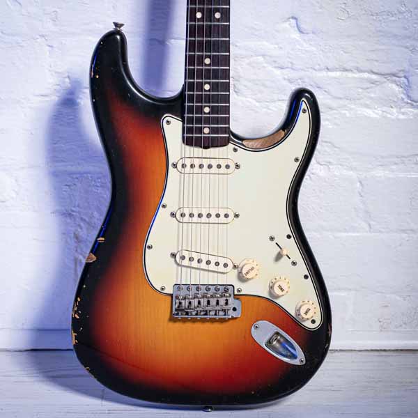 Fender Stratocaster 1965 Sunburst Rosewood Neck Serial L79383 Green Nitrate Guard Internally/Externally Original Condition 8.5/10 (Normal Playing Wear) Sound – Tone The above instrument is the optimum in tone, feel, and sound. Comments Classic Vintage Stratocaster in its original factory condition. |