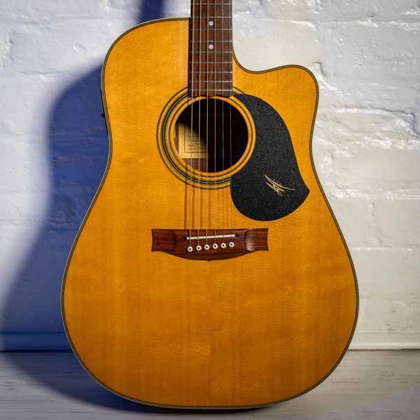 This guitar was built by Andy Allen as part of a special commission for Jimmy Page during the Page & Plant Australian Tour in 1996. It was presented to Page personally during a media event in Melbourne and was part of Page's personal guitar collection until it was later returned to the Maton Guitar Company.